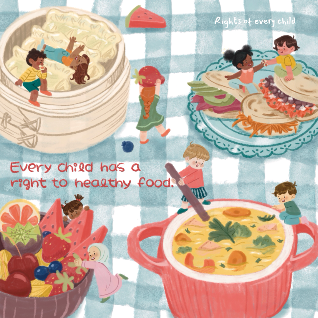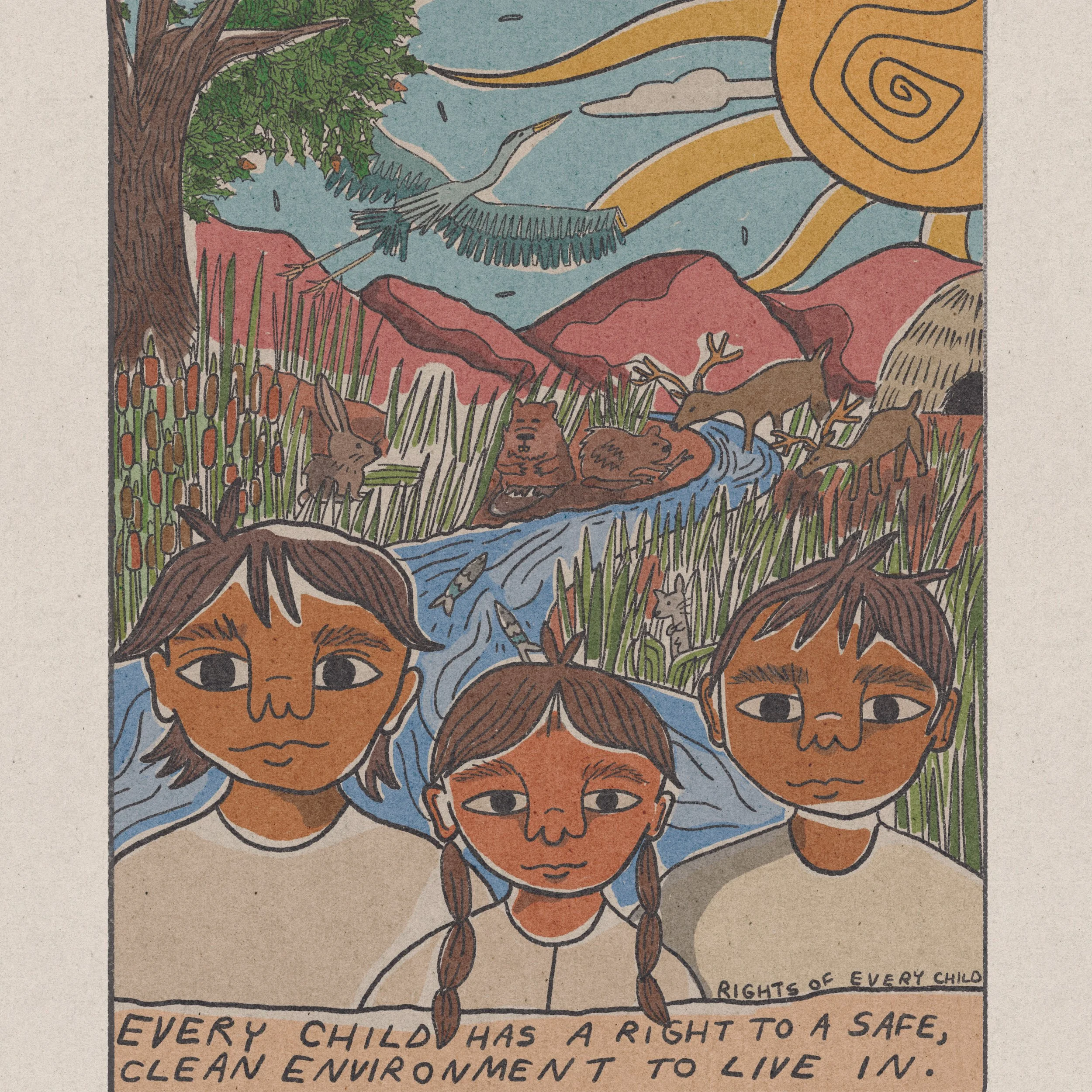 We share these illuminating illustrations and the artists’ intent behind them to inspire care, compassion, and momentum around the ways in which we are failing children while violating their internationally-agreed upon rights.