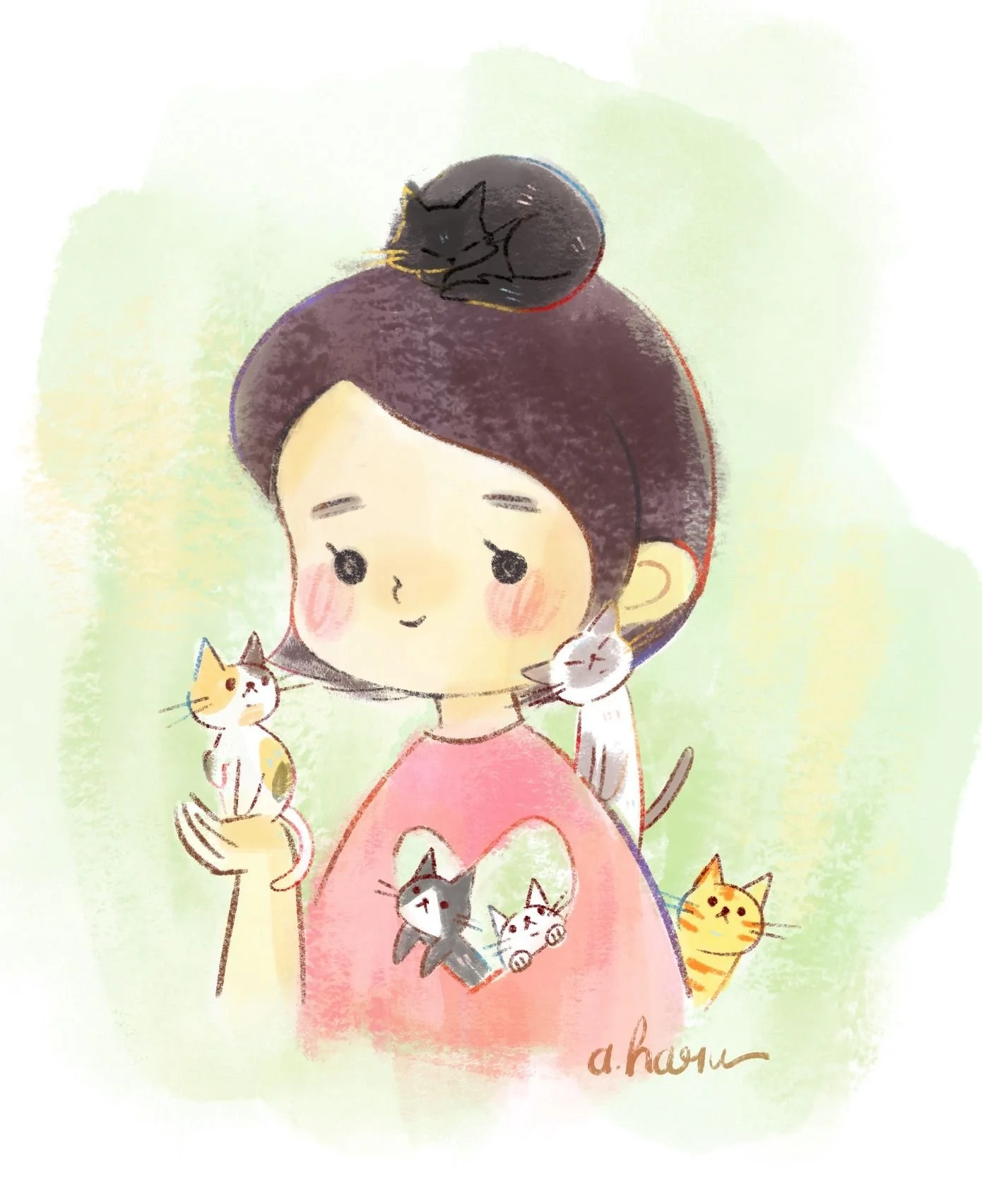 Amelia Haru is an illustrator based in Southern California. Her work is often an exploration of feelings she wants to invite into her own life. When anxious or feeling lost, she thinks about comforting places and memories, or characters who face the world with curiosity and wonder rather than fear. She is hugely inspired by nature, soft colors, evocative words, and cats.